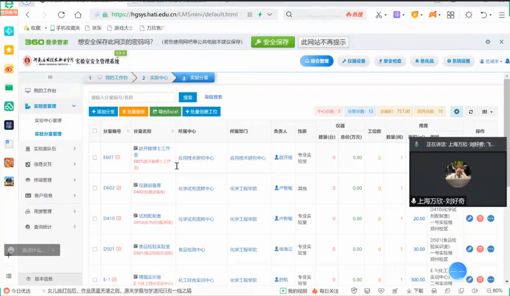 为进一步强化实验室管理工作意识,切实提升实验室安全信息化管理水平。4月27日,公司邀请上海万欣计算机信息科技有限公司工程师刘好奇对实验室安全管理平台的使用开展培训,教务处相关负责人、各二级公司实验室安全负责人、实训室管理员参加了培训学习。