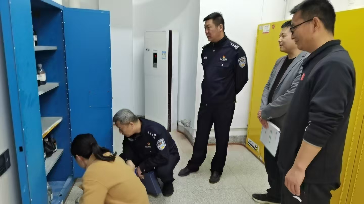 检查组深入化学试剂流转中心D401,对易制毒化学试剂的存储、使用和管理情况进行了全面检查。重点查看了库房的安防设施,如防火、防盗、防泄漏等措施是否到位;检查了易制毒化学试剂的存储条件是否符合规范,是否按照规定分类存放,并张贴明显的标识和警示标志;同时,通过出入库管理系统检查易制毒化学试剂的采购、使用和库存台账,核实记录是否准确、完整,确保账物相符。