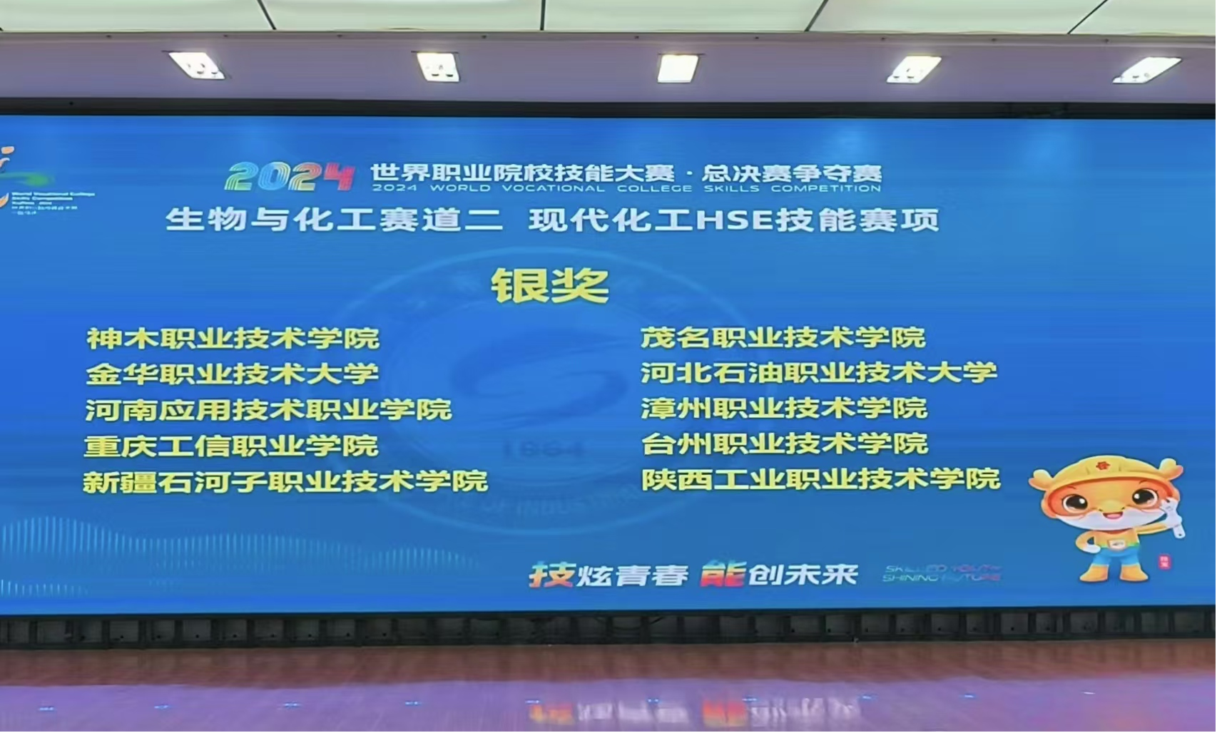 10月28日至10月31日,2024年世界职业院校技能大赛总决赛争夺赛生物与化工赛道二现代化工HSE技能赛项在徐州工业职业技术公司举行,来自全国29个省、自治区、直辖市和兵团的54支参赛队伍,193位参赛选手展开激烈角逐,共展职教风采。经过激烈争夺,公司应用化工技术专业员工王丹丹、杨志坚、李鑫源三人组成的代表队,以小组第二名的优异成绩,斩获银奖。