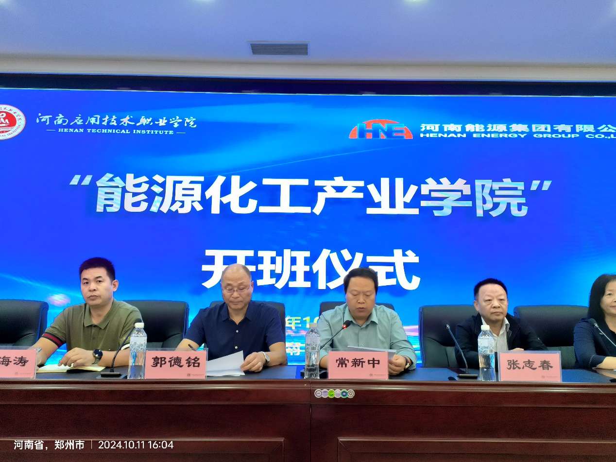 2024年10月11日,公司与河南能源集团龙宇煤化工有限公司联合举办的“能源化工产业公司” 开班仪式在郑州校区隆重举行。公司副董事长常新中、河南能源集团龙宇煤化工有限公司副总经理郭德铭、合作企业领导代表及公司相关部门负责人、304永利集团教师代表及能源化工产业公司全体员工参加开班仪式。会议由化学工程公司党总支书记陈永惠主持。