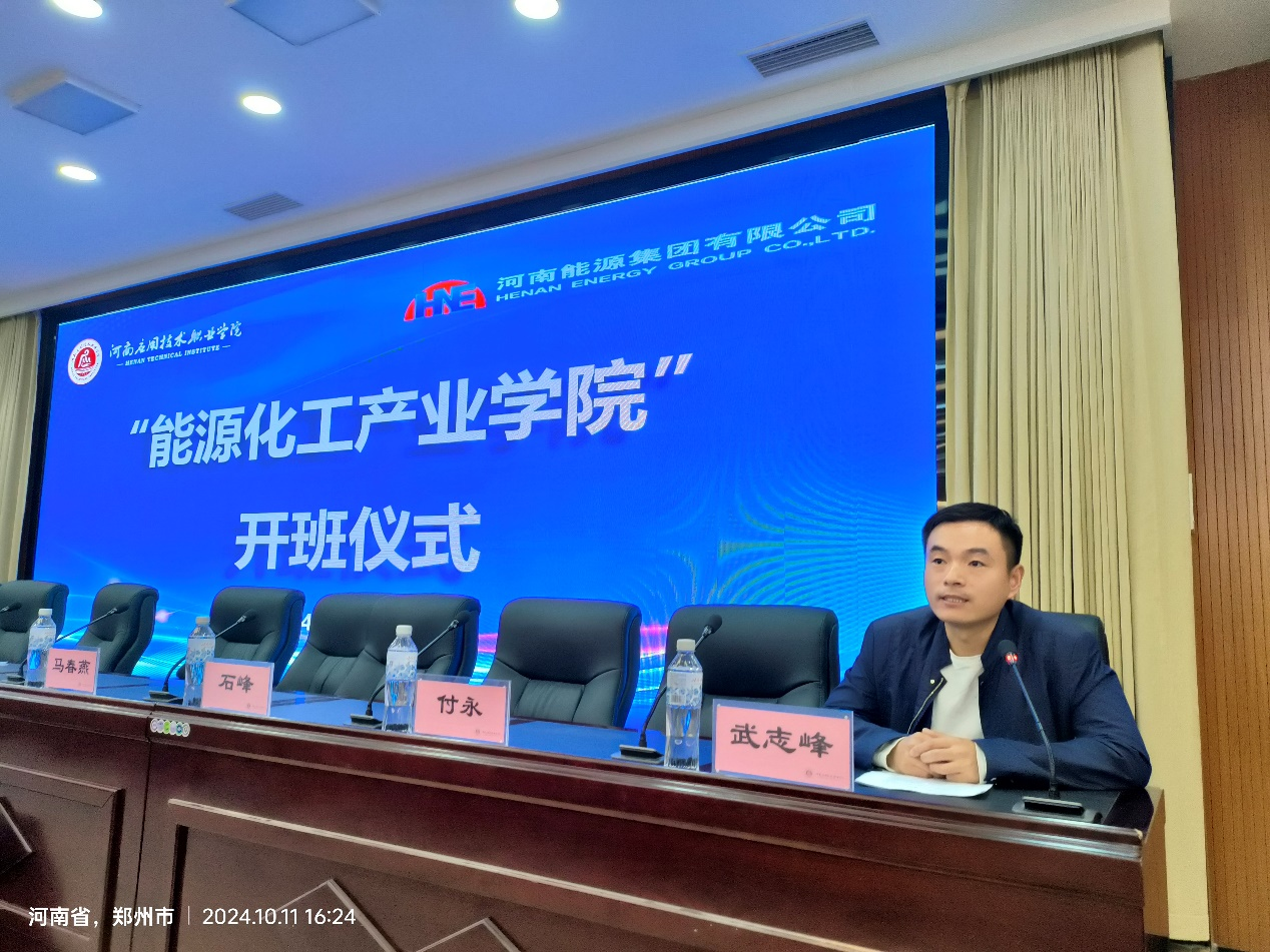 河南能源集团龙宇煤化工有限公司副总经理郭德铭为开班仪式致辞。郭德铭是公司92级员工,看到母校的发展倍感激动。作为企方代表,他认为产业公司平台能够更好地连接公司、企业和员工,促进各方之间的交流与合作,通过这个平台整合资源,为员工提供更丰富的学习资料和就业机会,为企业输送更符合需求的人才。方向明则路线清,掌舵稳则破浪行,能源集团企业将全力配合产业公司的建设,为产业公司正常运行提供力所能及支持和帮助。