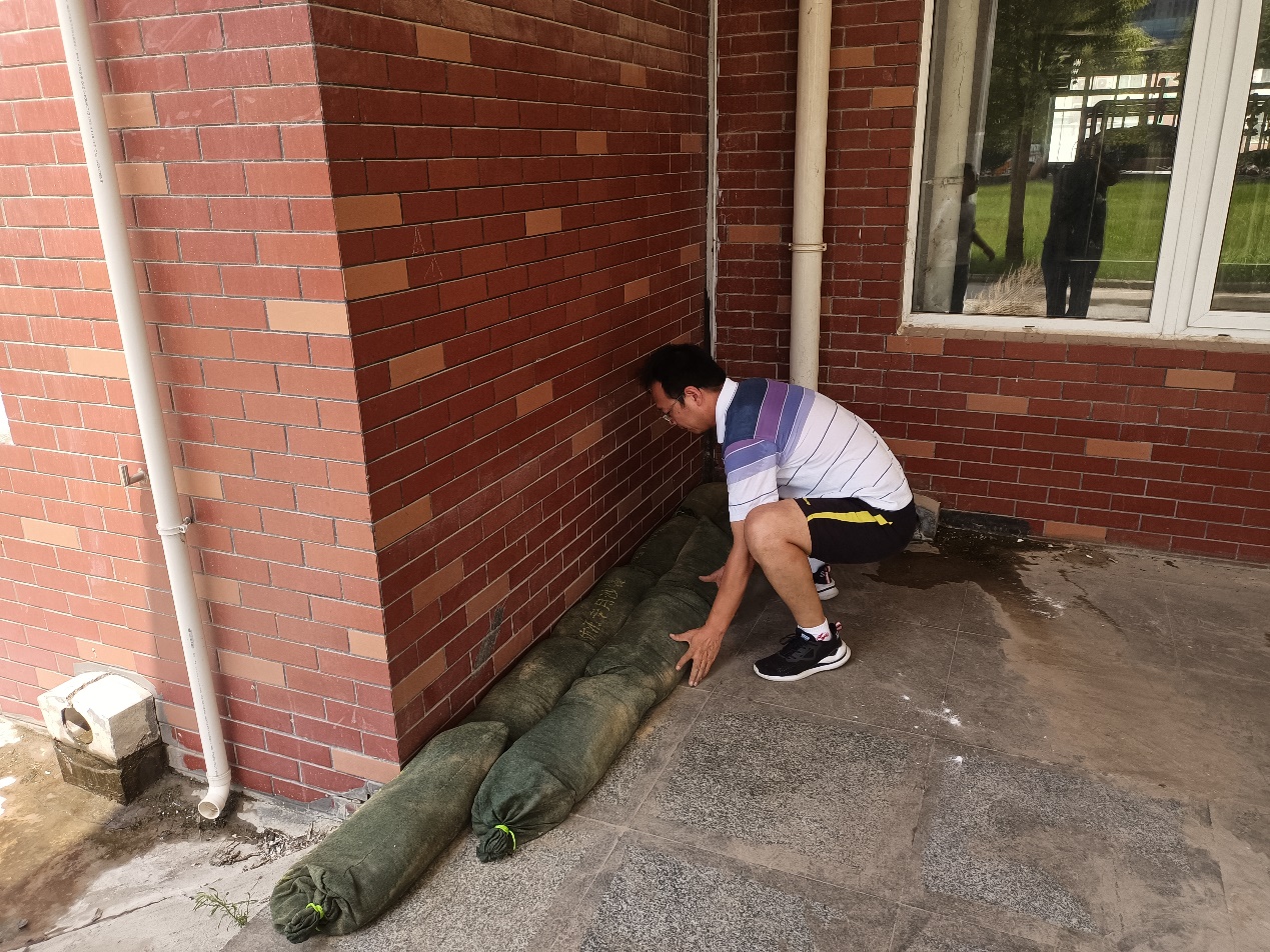 此次汛期隐患排查由朱冰经理带队,他查看了E楼负一层实训中心雨季防护工作,并积极组织人力,调拨防汛物资,对排水口作清淤工作、加固沙袋等。他要求,院部值班人员要密切关注天气变化,加强汛情巡查,出现问题及时上报,进一步消除防洪隐患,全力防范暴雨天气带来的危害,将防汛备汛和疫情防控两手抓,落实平安开学条件,全力护航校园安全。