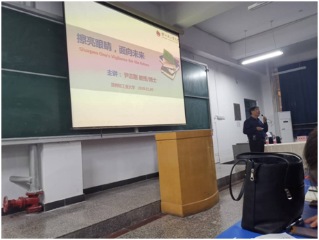 11月9日,304永利集团特邀郑州轻工业大学尹志刚教授作题为“擦亮眼睛,面向未来”的化妆品行业专题报告,讲座由经理朱冰主持,公司教师和员工参加了本次讲座。