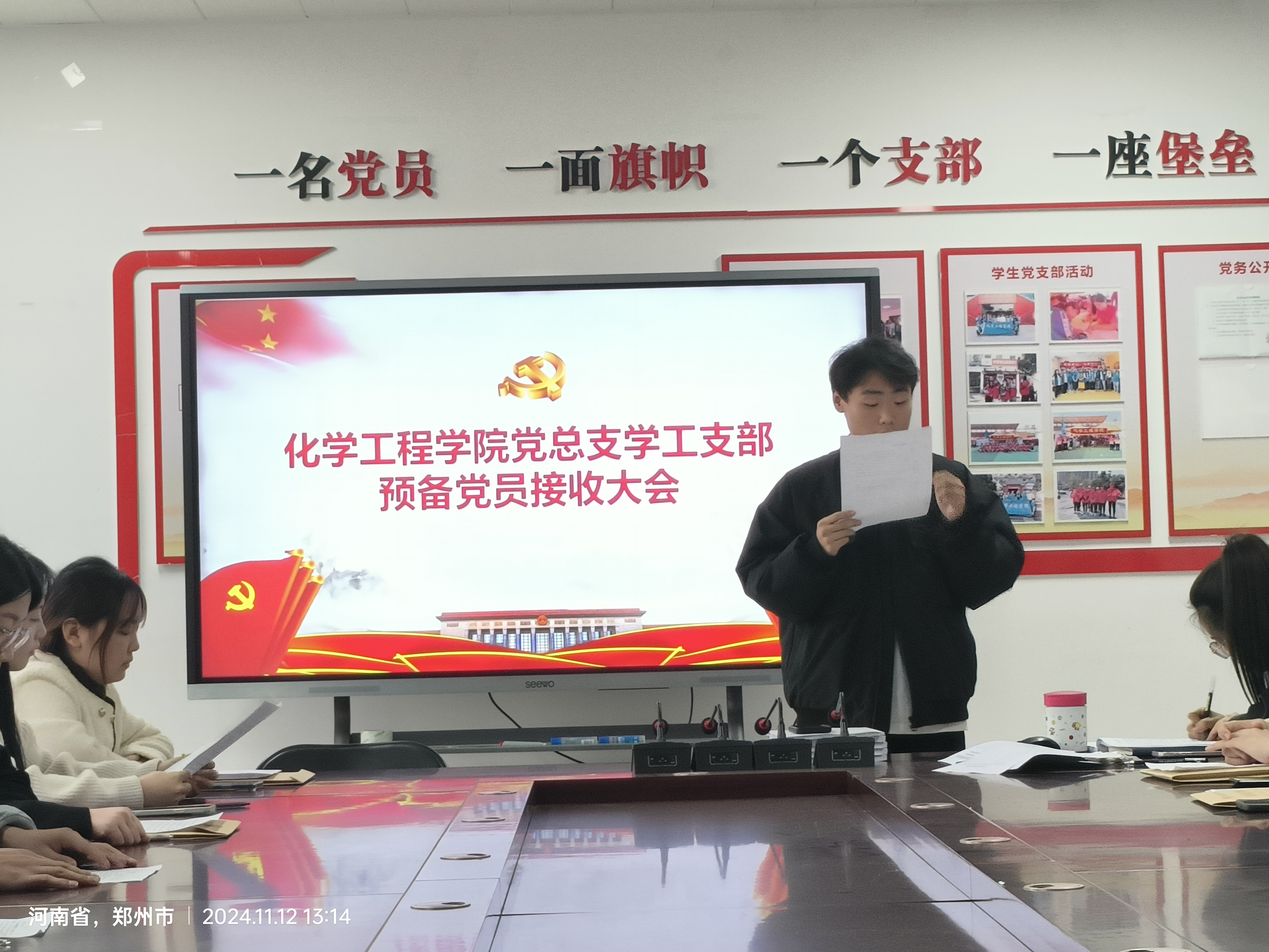 为进一步加强和推进党员队伍建设,切实提高党员发展质量,保持党员队伍先进性和纯洁性。2024年11月12日,化学工程公司党总支学工支部于A512党员活动室召开预备党员接收大会,学工支部全体党员参会,会议由学工支部组织委员何璐红主持。