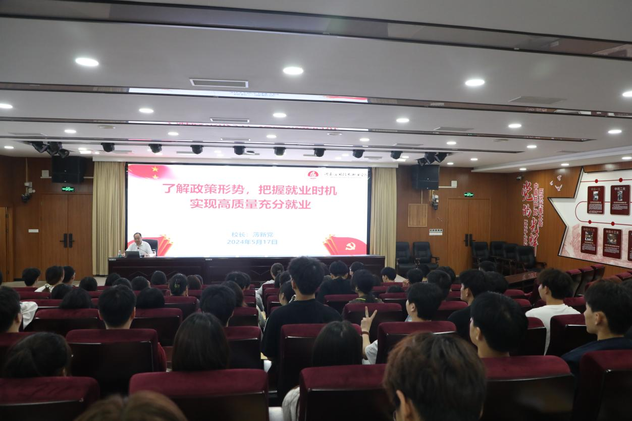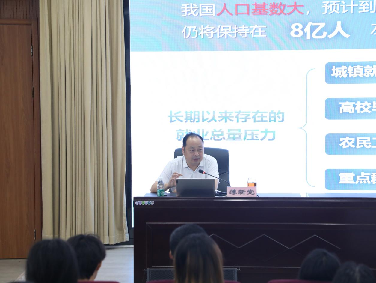薄新党从就业形势概况、就业政策简析、就业路径建议等方面多角度深入解读国家当前的就业形势及相关支持政策,引导科学理性看待就业面临的问题与挑战。薄新党还详细介绍了公司推进高质量就业的措施和取得的成绩,通过客观详实的数据、鲜活生动的事例,勉励同学们增强信心、明确目标,坚决摒弃慢就业、缓就业、甚至不就业的观念,积极就业,扎根基层,磨练技能,在不懈奋斗中绽放出青年学子独有的绚丽青春之花。