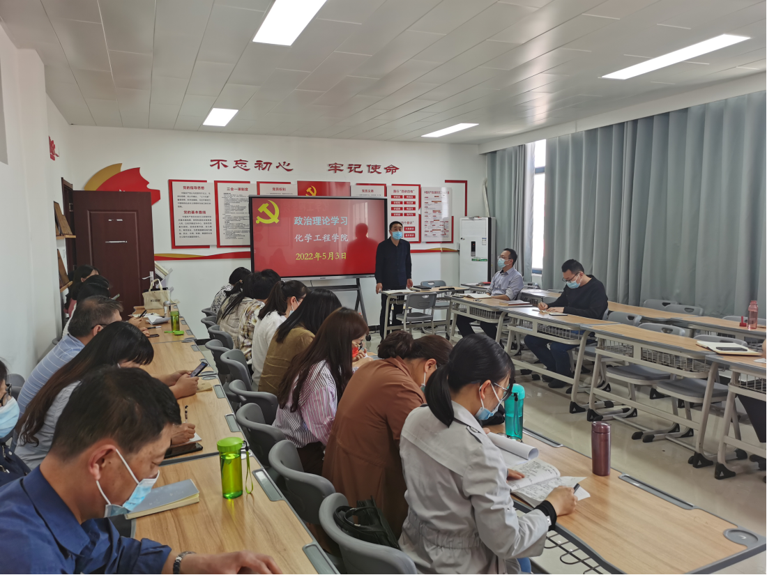 2022年5月3日,化工公司党总支在A512党员活动室组织开展学习习近平总书记在人民大学考察时的讲话精神、习近平新时代中国特色社会主义思想学习问答,会议由总支书记蔡庄红主持。