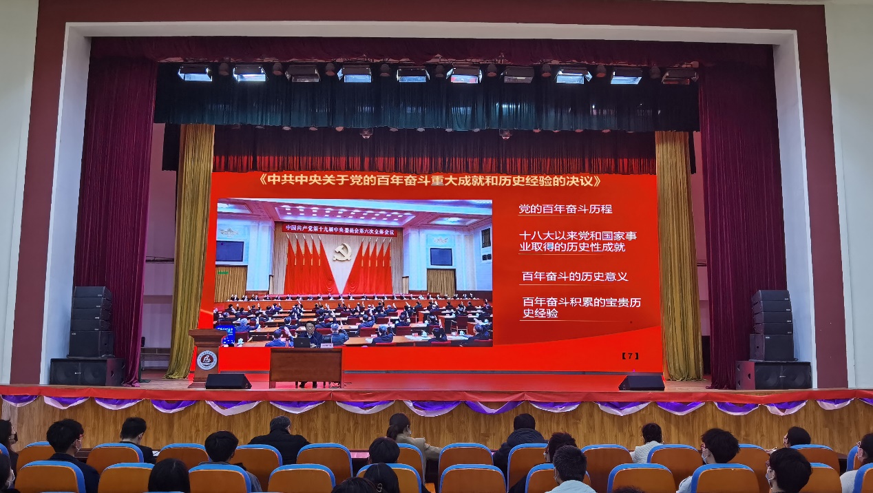闫俊山从师生们关注的北京冬奥会为切入点,从中国奥运百年,看中华之崛起,深刻剖析了过去我们为什么能够成功、未来我们又怎样才能继续成功?从十八大以来党和国家事业取得的历史性成就、我们党百年奋斗的历史意义和积累的宝贵历史经验等几个方面,带领师生系统学习、解读了党的十九届六中全会精神。既有政治高度,又有理论深度,同时也对广大同学提出了勤奋学习、积极锻炼、全面发展的殷切希望。