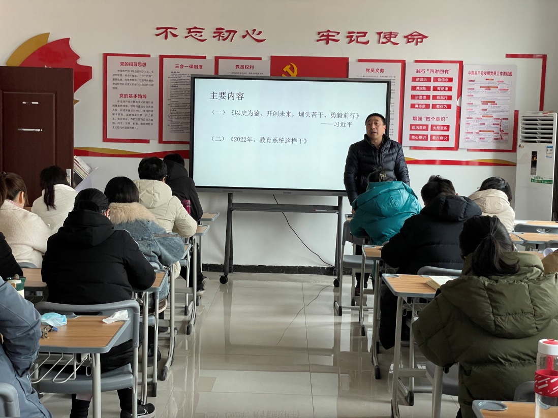 2022年2月22日下午,化工公司党总支在A512党员活动室组织开展学习了习近平总书记在党的十九届六中全会第二次全体会议上的重要讲话《以史为鉴、开创未来,埋头苦干、勇毅前行》以及《2022年,河南教育这样干》全省教育工作会议精神,会议由化学工程公司党总支总支书记蔡庄红主持,全体教师参加了会议。
