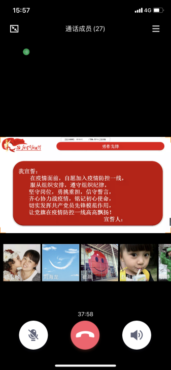 最后,党委委员赵玉奇同志带头和全体党员一起在手机、电脑屏幕前,举起右手,共同宣读战疫誓词,用誓言表达大家防疫和争做先锋的决心。