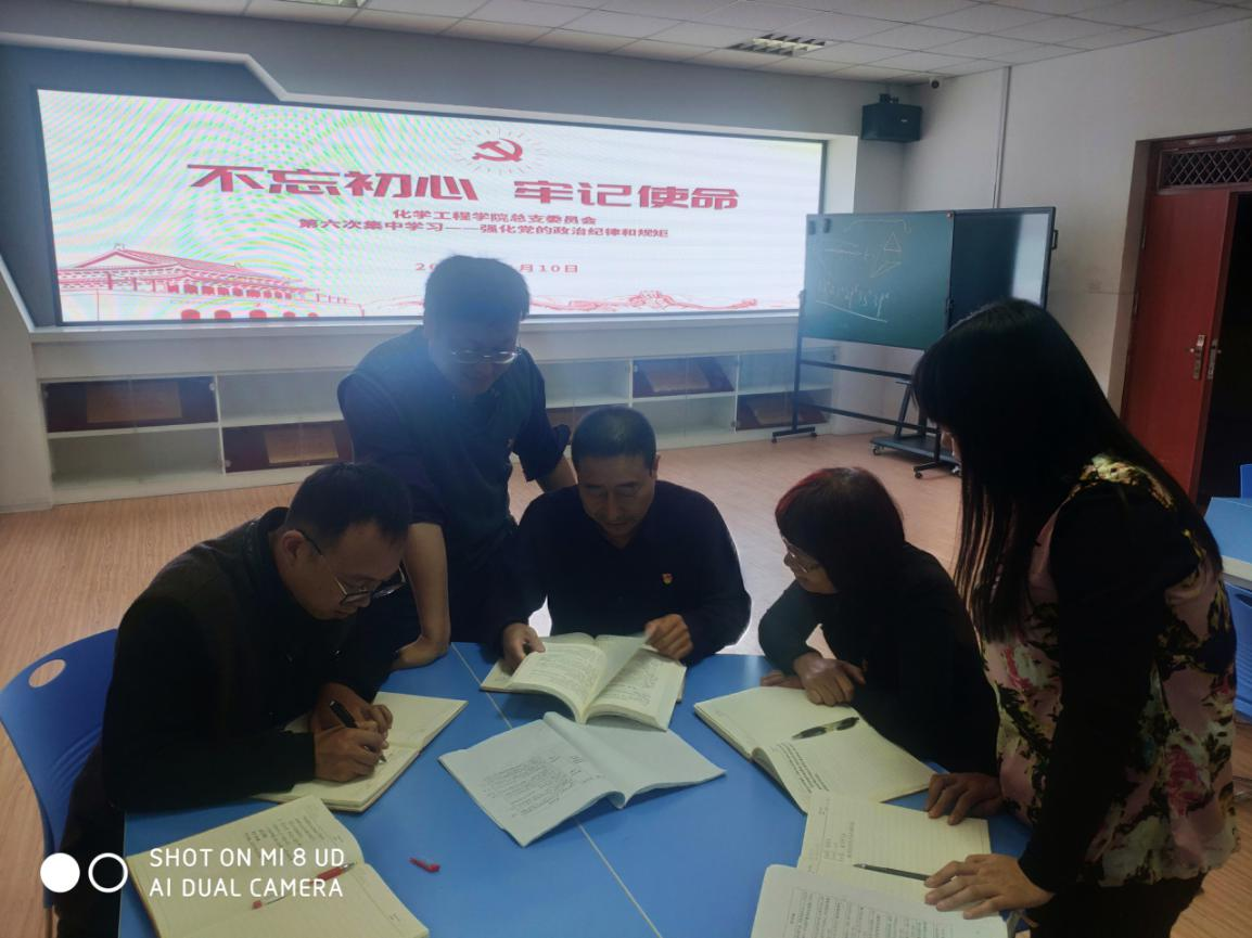 2019年11月10日下午,化学工程公司党总支部委员会组织召开了“不忘初心、牢记使命”第六次集中学习会议。会议由总支书记蔡庄红主持。