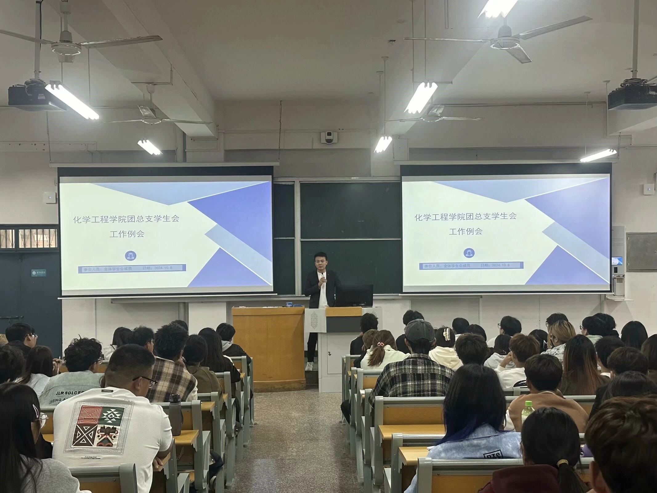 员工会各部门部长上台做自我介绍并且介绍了各个部门学期的工作计划。呼吁新的员工干事在工作上,做事要耐心、细心、踏实。