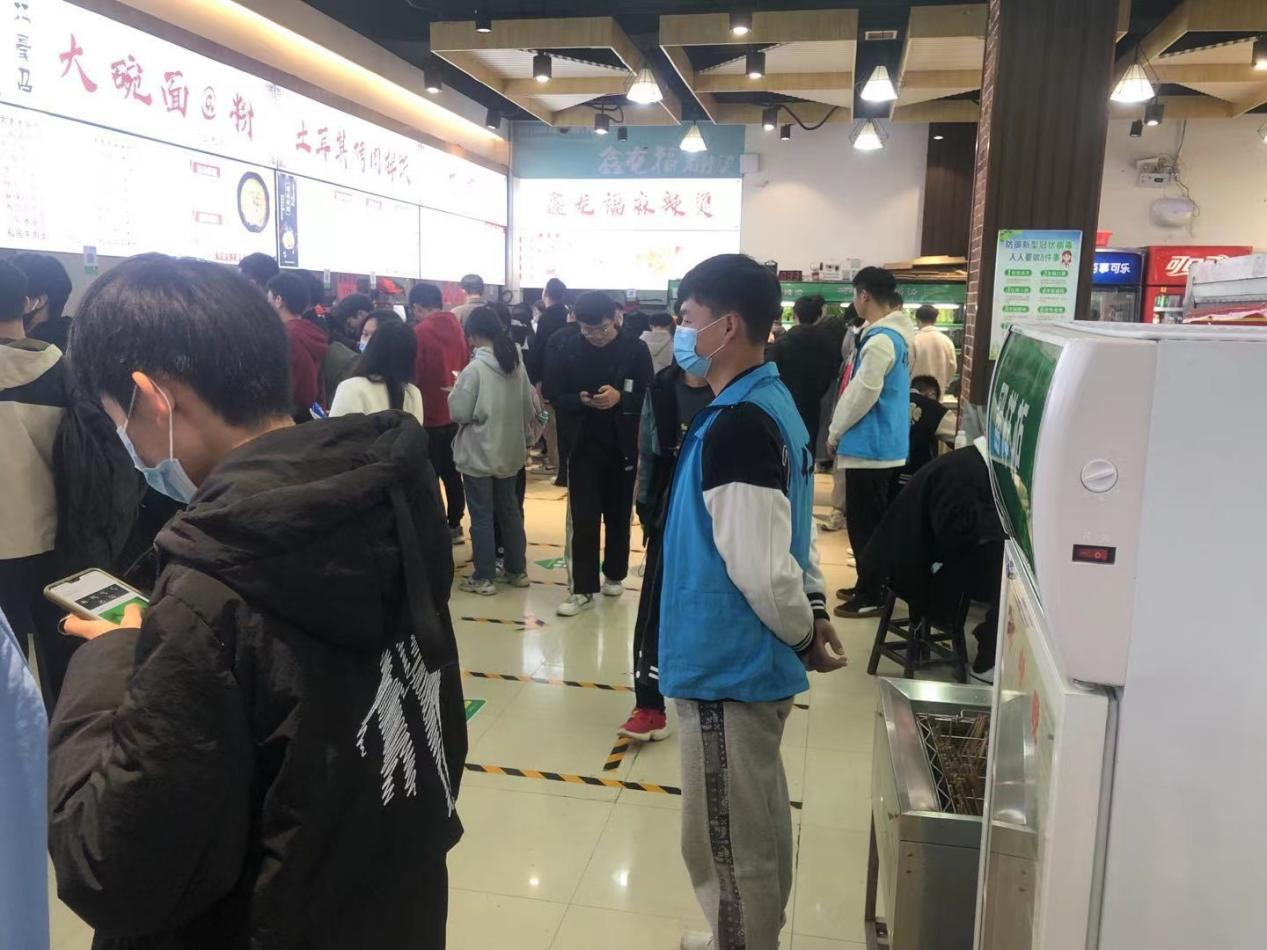 活动期间,志愿者对员工们引导员工保持好距离,收拾餐具,提醒大家饭后及时佩戴口罩,倡导大家文明就餐,通过自身的行动为打造良好、和谐、温馨的就餐环境贡献了自己的力量。