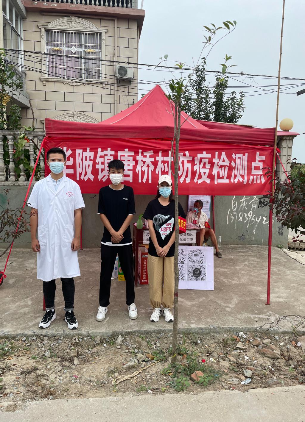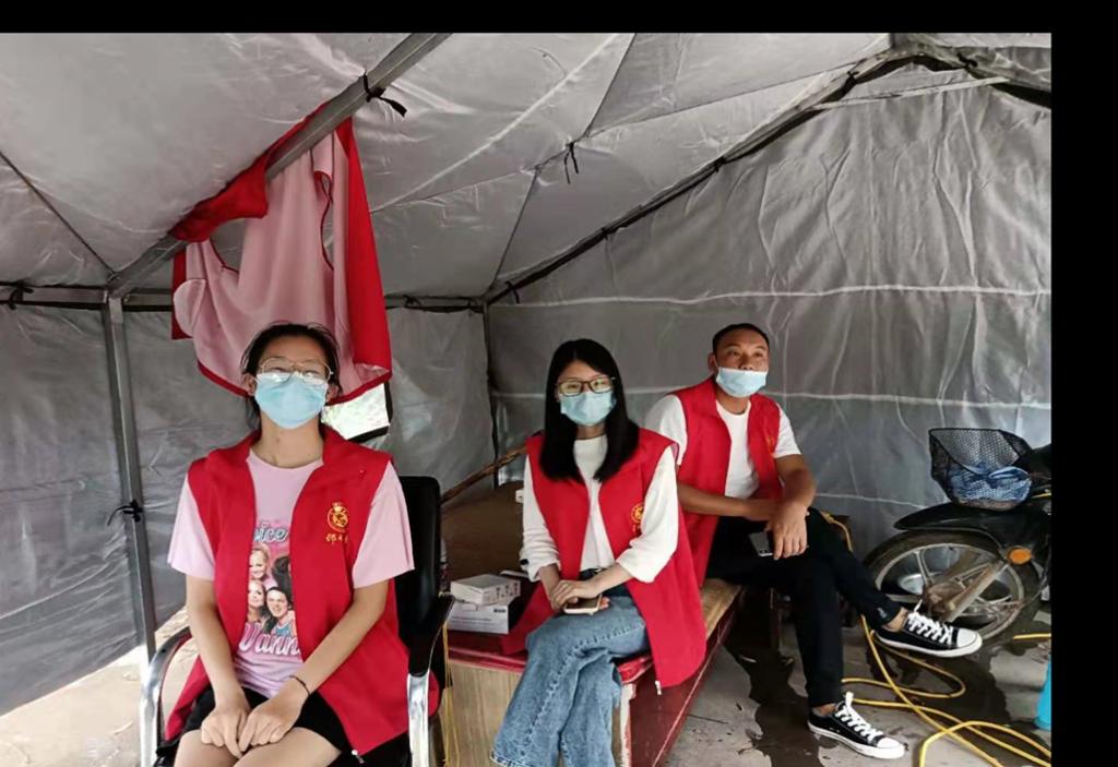 化工2003班王金梁,之前由于车祸还在休养中,但得知政府为确保人民生命安全,需进行全明核酸检测并建立社区卡点后,积极响应号召,主动加入南阳市淅川县西簧乡疫情防护志愿服务队。