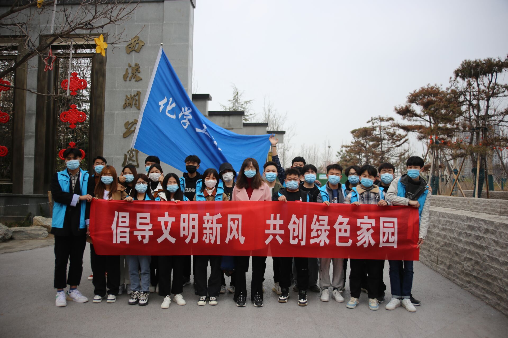 大家身着化工志愿马甲,高举化工公司旗帜,在辅导员齐若冰老师的带领下,来到郑州西流湖公园进行志愿活动。同学们精神抖擞,个个都戴上了手套,拎着垃圾袋,积极投入到了热火朝天的公园环境美化劳动中,大家不怕脏不怕累,积极主动的到每个角落去捡垃圾,大家分工协作,有条不紊。每位同学都感受着劳动的乐趣,欣赏着沿途的风光。经过一段时间的辛勤劳作,每位同学手中的垃圾袋中都装满了垃圾,大家看着整洁美丽的公园,脸上露出了欣慰的笑容。