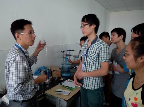 为进一步丰富我系第二课堂员工的课余生活,强化第二课堂员工对分析仪器的使用,2014年9月26日上午我系邀请应用化学系副教授夏朝辉老师对第二课堂员工在PH计、浊度计、电导率测试仪等分析仪器调试、使用和维护方面给予技术指导。