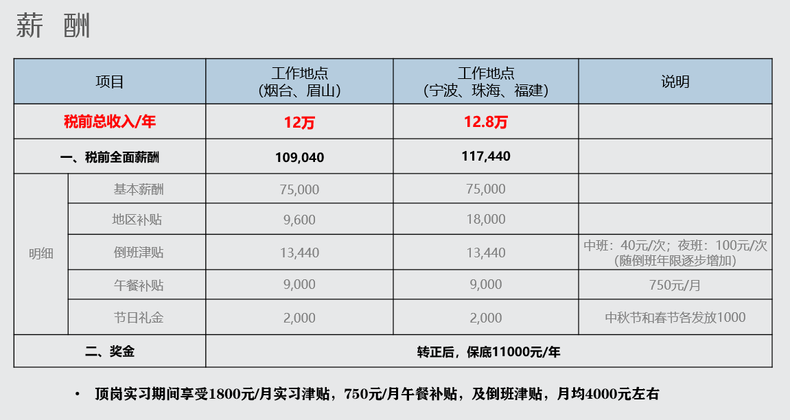 薪酬:毕业转正后如下: