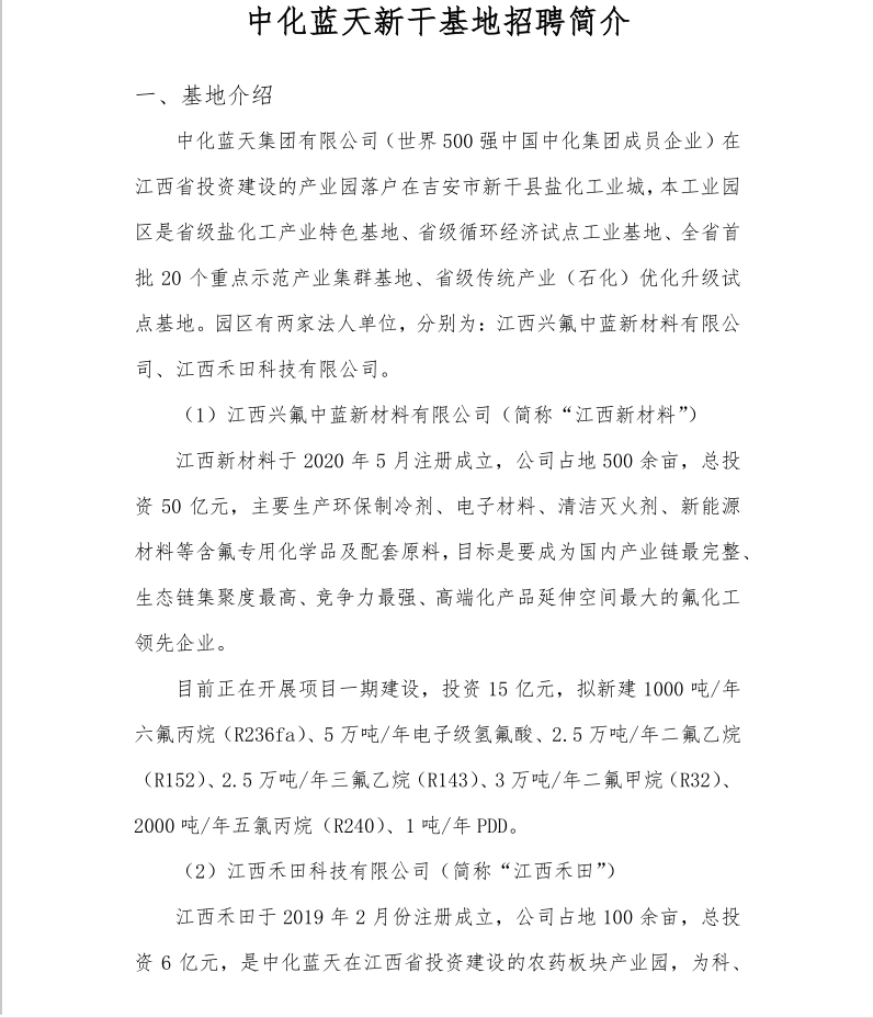 上一条:中化蓝天氟材料有限公司2021年招聘简章 下一条:湖北中蓝宏源新能源材料有限公司简介