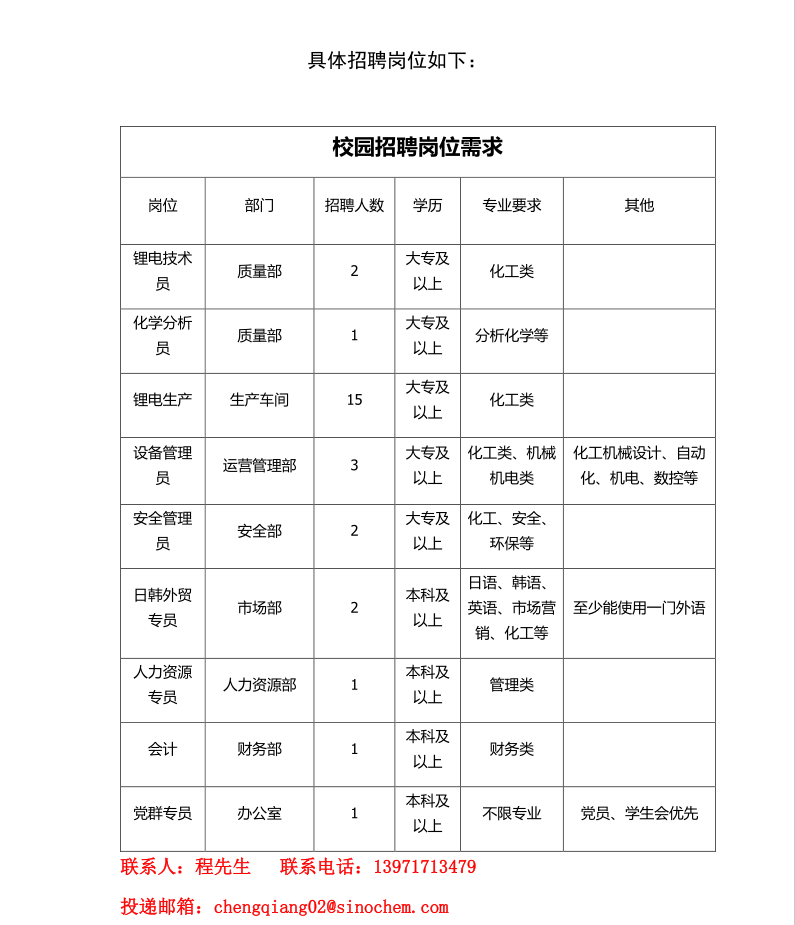 上一条:中化蓝天新干基地招聘简介 下一条:中化蓝天集团郴州基地校园招聘简章